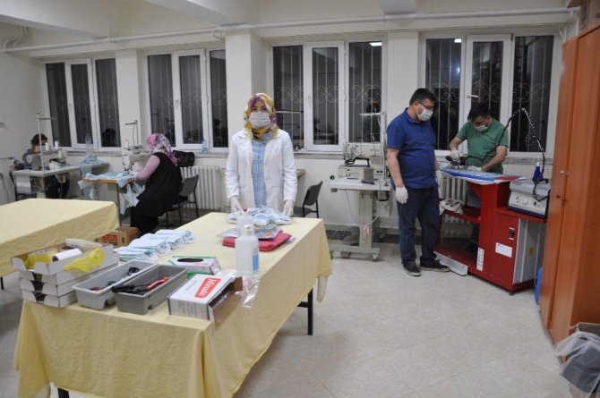 Kütahya’nın Simav ilçesinde bulunan Halil İbrahim Kazcıoğlu Mesleki Eğitim Merkezi Müdürlüğü’nde görevli moda tasarım ve giyim üretimi teknolojisi öğretmenleri tarafından gönüllülük esasına göre maske üretimi yapılıyor. İlk etapta esnaflara ve kamu personeline 25 bin ücretsiz maske desteği verilirken, hedeflerinin 100 bin maske üretmek olduğu belirtildi.