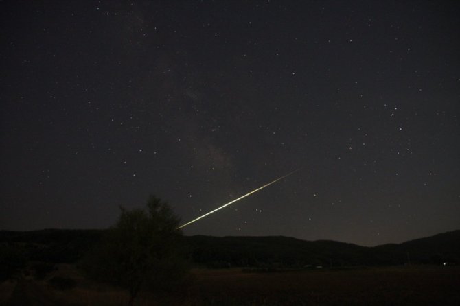 Bursa'da samanyolunu görüntülemek isteyen doğa fotoğrafçısı meteorun atmosfere girişini görüntüledi.