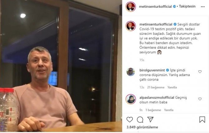 Ünlü sanatçı Metin Şentürk korona virüse yakalandı. Testinin pozitif çıktığını sevenlerine video çekerek duyuran Şentürk, "Pozitif bir adamın testinin...