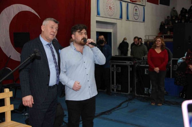 Düzce(İHA) – Düzce'de Valiliğin özel bireyler için başlattığı "Engelleri birlikte aşıyoruz" kampanyası çerçevesinde ünlü şarkıcı Metin Şentürk, konser verdi. Konserde Düzce Üniversitesi Türk Müziği Bölümünde okuyan görme engelli öğrenci ile düet yapan Metin Şentürk, öğrencinin geleceği ile ilgili olarak yardım edeceğine dair söz verdi ve kendisi için şarkı yazacağını söyledi.