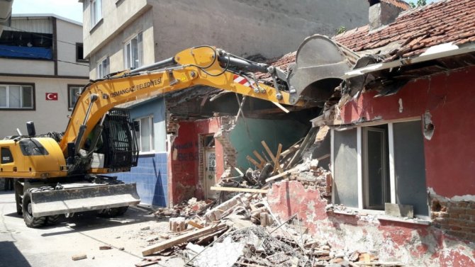 Osmangazi Belediyesi, Tuna Mahallesi'nde can ve mal güvenliği açısından tehlike arz eden metruk binayı yıktı.