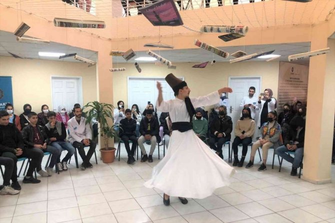 Mevlana'ya ait şiirler okunduğu programlarda, müzik kulübü öğrencileri de ilahiler söyledi.