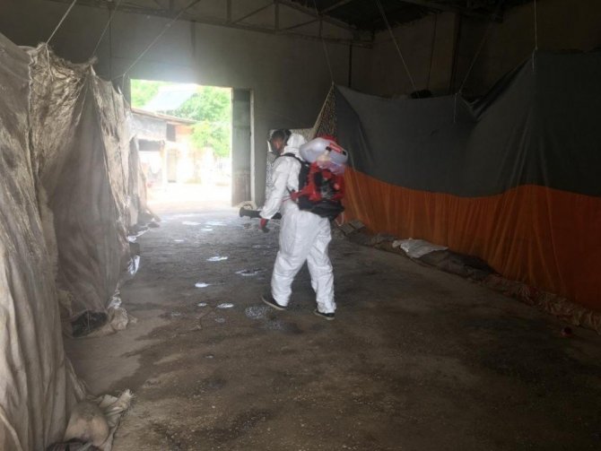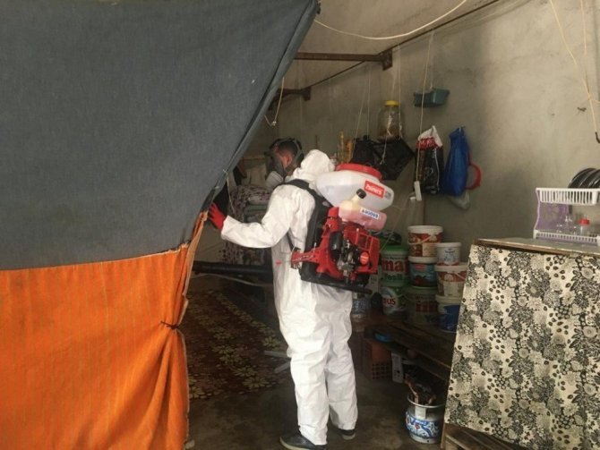 Mevsimlik işçilerin konaklama yerlerinde dezenfekte çalışması
