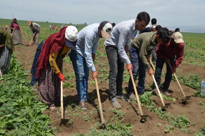 Diyarbakır'ın Çermik ilçesinden Muş Ovası'na gelen işçilerden Kutbettin Koç, 40 aileyle merkeze bağlı Muratgören köyü yakınlarında çadır kurarak tarlalarda çapa işi yapmaya başladıklarını söyledi. Sabah erken saatlerde işbaşı yaptıklarını ifade eden Koç, "Mevsimlik işçiler olarak bunaltıcı sıcakta şeker pancarı çapası gerçekleştiriyoruz. Çapa işçiliği için Muş'a geldik. Muş Ovası'nda şeker pancarı çapası bitene kadar çalışacağız. Daha sonra Adapazarı'na gideceğiz. Çünkü bizim geçim kaynağımız budur" dedi.