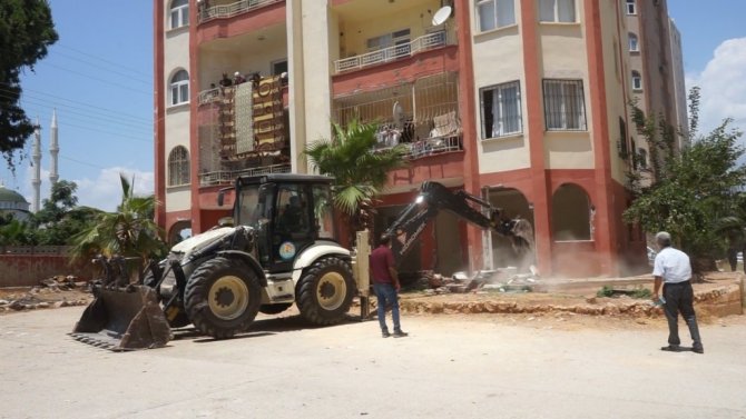 Mezitli Belediyesi, binalarda kaçak ve ruhsatsız olarak yapılan, ayrıca tehlike oluşturan bölümlerde yıkım gerçekleştirdi. Bir sitenin zemin katına yapılan kaçak bölümler, belediye ekiplerince yıkıldı.