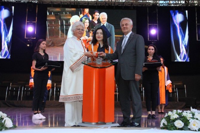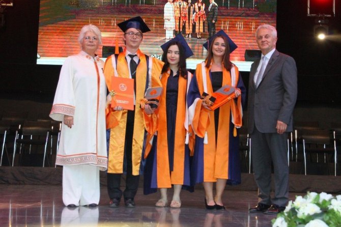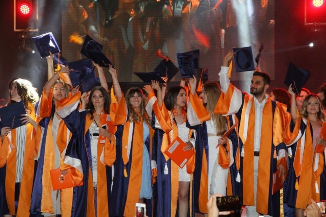 Eğitimlerini 2017-2018 akademik yılında başarıyla tamamlayan İzmir Ekonomi Üniversitesi İşletme, Güzel Sanatlar ve Tasarım, Fen Edebiyat Fakülteleriyle Uygulamalı Yönetim Bilimleri Yüksekokulu mezunları diplomalarını aldı. İEÜ Açık Hava Gösteri Merkezi’nde gerçekleştirilen mezuniyet töreninde öğrenciler keplerini İEÜ ve 10. Yıl Marşları eşliğinde fırlatarak, gurur dolu anlar yaşadı. Törende, gençleri İzmir Ticaret Odası Meclis Başkanı Selami Özpoyraz, İEÜ Rektörü Prof. Dr. Can Muğan, İTO Eğitim ve Sağlık Vakfı Mütevelli Heyet üyeleri, akademisyenler ve aileler iş dünyasına uğurladı. İTO Meclis Başkanı Özpoyraz ve Prof. Dr. Muğan üniversite birincisi, İşletme Bölümü birincisi İrem Bilen ile birlikte şeref kütüğüne yıldız çaktı. Üniversite ikincisi, Endüstri Mühendisliği Bölümü birincisi Simge Güçlükol ve üniversite üçüncüsü, Elektrik-Elektronik Mühendisliği Sertaç Kılıçkaya’ya diplomalarını ve plaketlerini Özpoyraz ve Prof. Dr. Muğan verdi.