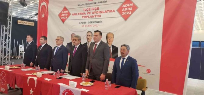 2023 seçimleri kapsamında "Adım Adım 2023, İlçe İlçe Anlatma ve Aydınlatma Toplantılarına" başlayan Milliyetçi Hareket Partisi (MHP), il il gezmeye devam ediyor. MHP Genel Merkezi heyeti, her ilde yapılan toplantılar kapsamında Aydın'a geldi. Milliyetçi Hareket Partisi (MHP) Genel Başkanı Devlet Bahçeli'nin talimatı ile başlayan "Adım Adım 2023" programları kapsamında il ve ilçe teşkilatları çalışmalarına aralıksız devam ederken ilk toplantı Germencik'te gerçekleştirildi. Yoğun bir katılımın olduğu toplantıda birlik ve beraberlik vurgusu yapılırken, 2023 seçimlerine doğru yapılacak çalışmalar ve projeler konuşuldu.