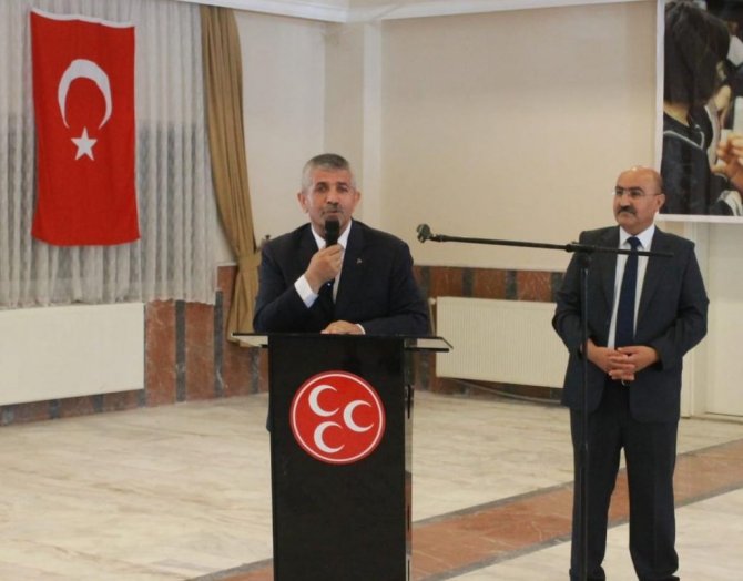 Toplantıda konuşan MHP İzmir İl Başkanı Veysel Şahin, toplantının konusunun "birlik ve beraberlik" olduğunu vurguladı. Veysel Şahin, "Şu anda birlik ve beraberlik zamanı. Şu anda teşkilata biat etme zamanı, beraberlik zamanı. Milliyetçi Hareket Partisinden ülkücülüklerini yaşayamadıkları için ayrılıp başka bir yere gidenler bugün PKK'nın temsilcilerini sabah kahvaltısına çağıracak duruma geldiler. Karşımızda bir şer cephesi oluştu. Öyle bir cephe oluştu ki içinde hem PKK var hem Temel Karamollaoğlu var, hem Kılıçdaroğlu var, hem partimizden ülkücülüklerini yaşayamadıkları için gidenler var. Bunların alayı karşımızda bir cephe oluşturdular" dedi.