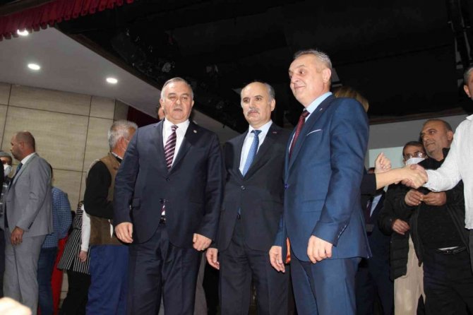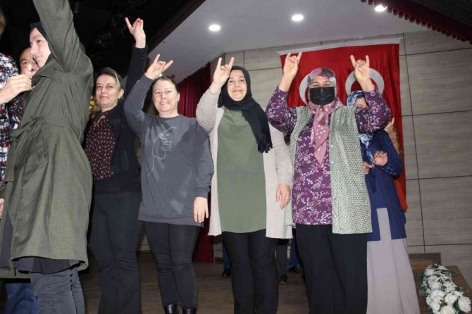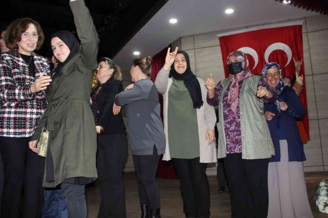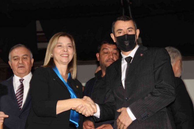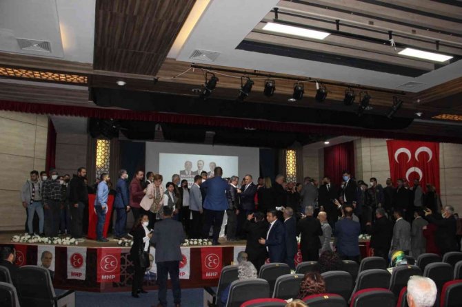 Ersoy'un konuşmasının ardından protokol üyeleri tarafından isimleri okunarak sahneye çağrılan 150 kişiye MHP parti rozetleri takıldı.