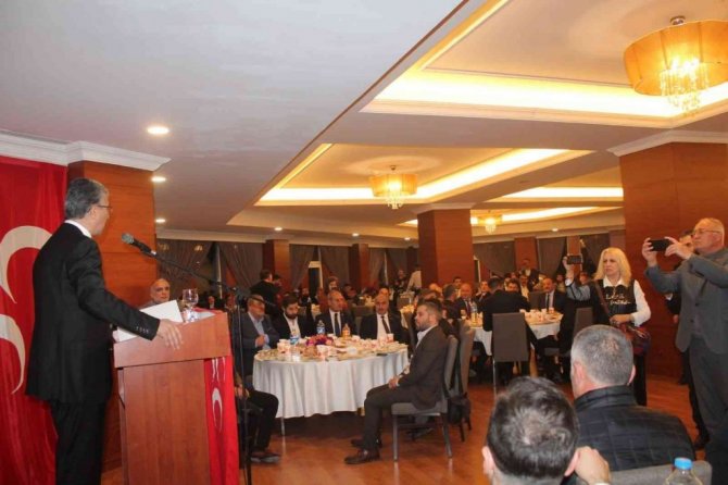 İftar buluşmasına ev sahipliği yapan MHP Erzurum İl Başkanı Naim Karataş, yaptığı konuşmada birlik ve beraberlik mesajları verdi. Karataş, "Gönlünü üç hilale kaptırmış olan ancak ve ancak ülkülerinin peşinden koşar. Dolayısıyla bizim davamızda ikbal derdi olmaz, istikbal derdi olur. Bizim işimiz hakikatledir, yalanla işimiz olmaz. Biz halkın yanında olduk, hakkın yanında olduk, hakkaniyetin yanında olduk, helalin safını tuttuk. Dün ne idiysek, bugün ve yarın da aynı olacağız. Aziz milletimizin derdiyle dertlenmeye, sadece milletimizin selameti için mücadele etmeye ve bu aziz vatanın namını da, şanını da yüceltmek için var gücümüzle çalışmaya devam edeceğiz" diye konuştu.