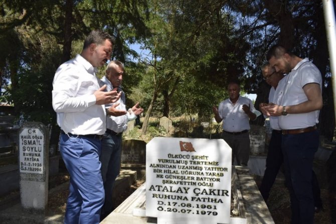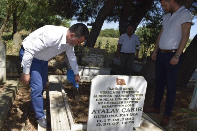 Milliyetçi Hareket Partisi Balıkesir İl Başkanı Ekrem Gökay Yüksel, Karesi İlçe Başkanı Kürşat Burak Boduroğlu ve İl Yönetim Kurulu Üyeleri Şamlı Mahallesinde bulunan Ülkücü Şehit Atalay Çakır'ın kabrini ziyaret ettiler.