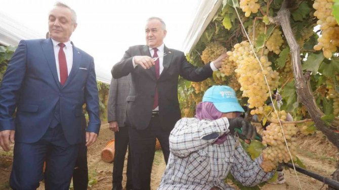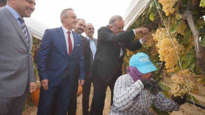 Akçay, kahvaltının ardından Yukarıkoçaklar Mahallesi'nde bağda üzüm kesimi yapan işçilerle ve bağ sahibi Ersoy Erdoğan ile bir araya gelerek sohbet edip sıkıntılarını dinledi. Üzüm denilince Manisa'nın Sarıgöl ilçesinin ön plana çıktığını vurgulayan Akçay, "Manisa ilinde yüz bin aile geçimini üzümle sağlamakta. Ailesini üzümle geçindirir. Kızının, oğlunun düğünlerini üzüm geliri ile yapar, çocuklarının okumasını da üzüm geliri ile yapmaktadır" dedi.