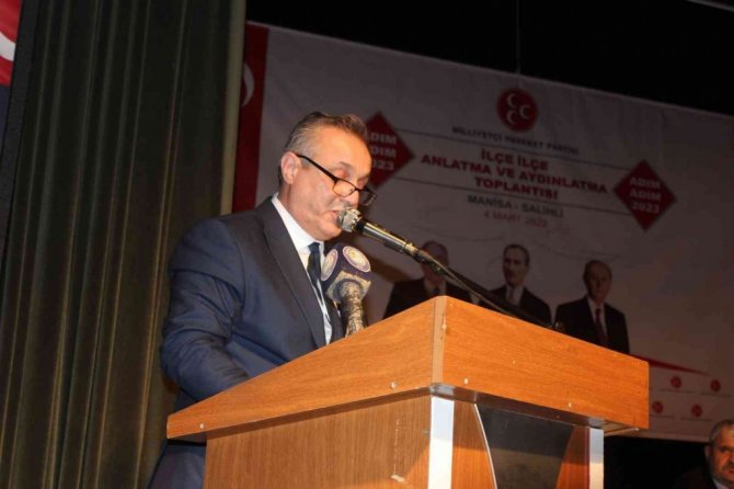 Genel Başkan Devlet Bahçeli'nin talimatıyla başlattığı "Adım Adım 2023, İlçe İlçe Anlatma ve Aydınlatma" başlıklı toplantılarının Manisa ayağını Salihli'den başlattıklarını ifade eden Manisa İl Başkanı Murat Öner, "MHP, büyük bir milletin eseridir. MHP'nin kökü mazide, kökeni Türk tarihinde, ruhu ise büyük Türk Milletindedir. Türk milliyetçilerini ve Türk siyasetinin son 50.yılına damgasını vurmuş olan MHP'nin öncelikli varlık nedeni, milli bekanın devamını sağlamaktır. MHP, Türkiye'nin çıkarlarını her düşüncenin üstünde tutan, sorumlu siyaset anlayışının temsilcisidir. Biz Milliyetçi Hareket Partisiyiz. Bizim içim için siyaset koltuk, makam ve para aracı değildir. Bizim için siyaset, Türk Milletine hizmettir" diye konuştu.