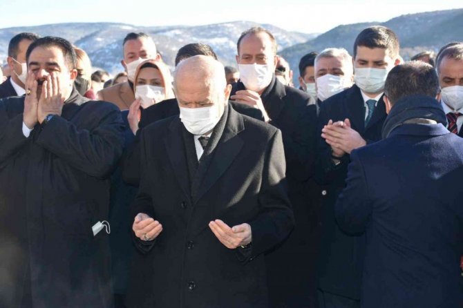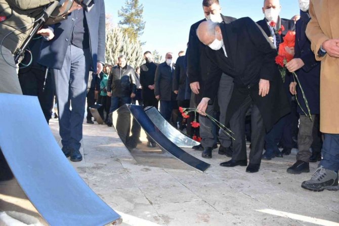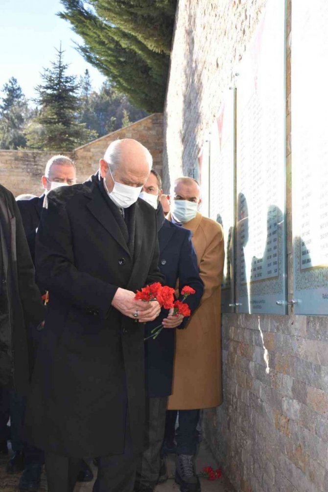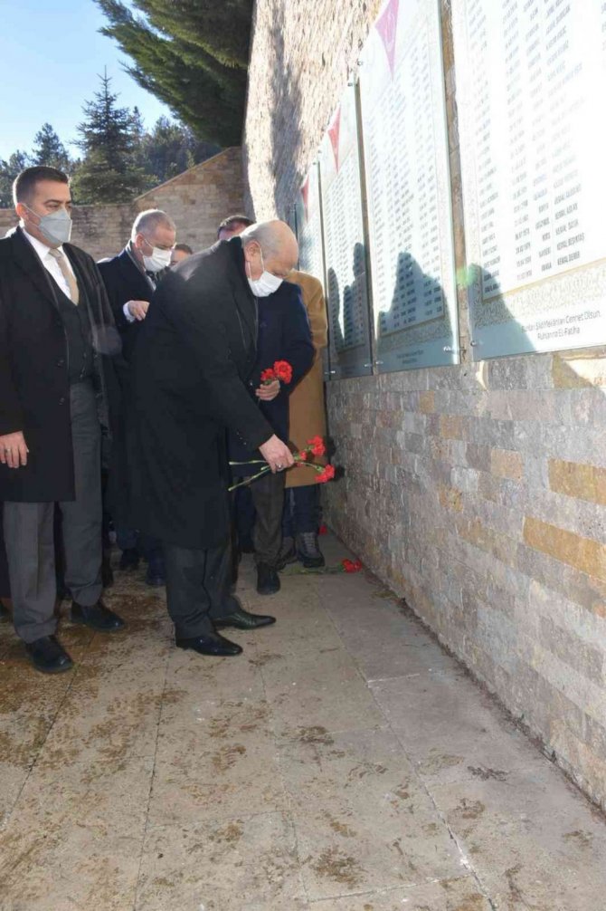 Anıtta Kur'an-ı Kerim tilavetinin ardından dua eden Bahçeli, sonrasında şehit isimlerinin yazılı olduğu alanlara karanfil bıraktı.