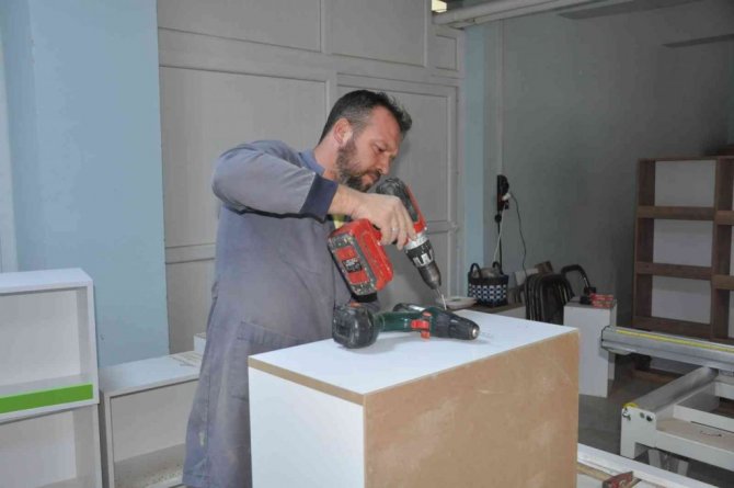 Milas Mesleki Eğitim Merkezi tarafından 50 okulda açılacak olan kütüphaneler için kitaplık üretimini tamamladı.
