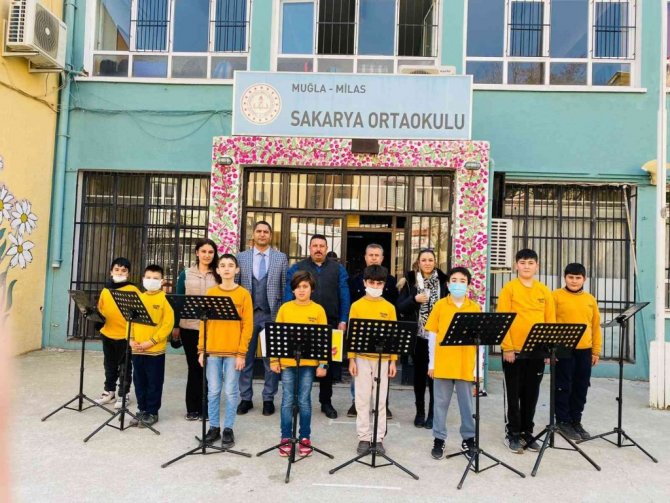 Milas Yörük-Türkmen Kültür Derneği, Sakarya Ortaokulu Müzik Öğretmeni Beste Işıl Çakır Yılmaz'ın yoğun emek vererek oluşturmaya çalıştığı müzik odasına katkı sağlamak amacıyla okula sekiz adet nota sehpası hediye etti.
