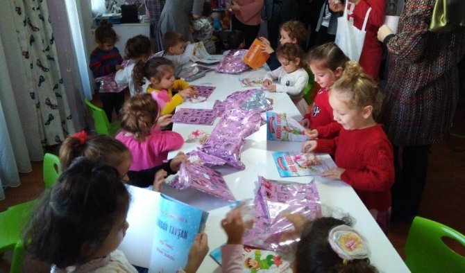 Hediyelerini alan öğrenciler ise mutluluklarını toplu bir şekilde "Teşekkürler" cümlesiyle ifade etti.