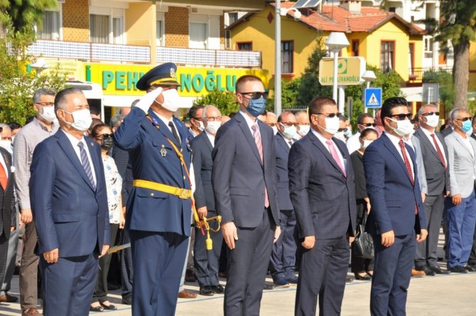 Tören, Atatürk Anıtı'na Milas Kaymakamlığı, Milas Belediye Başkanlığı ve Garnizon Komutanlığı çelenklerinin sunumuyla başladı.