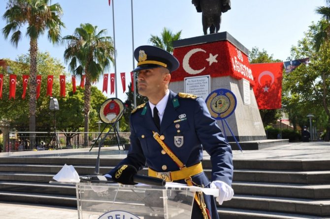 Protokolün, törene katılan vatandaşların bayramını kutladıktan sonra günün önem ve anlamını belirten konuşma Hava Piyade Üsteğmen Fatih Aydın tarafından yapıldı. Aydın konuşmasında, "Bugün, mazisi kahramanlıklarla dolu yüce Türk milletinin ve kahraman Türk ordusunun, kutsal vatan topraklarını işgal ederek milletimizi tarih sahnesinden silmeye kalkışan düşmanlara karşı tüm imkânsızlıklara rağmen; ebedi başkomutanımız Mustafa Kemal Atatürk önderliğinde kazandığı 30 Ağustos Zaferi'nin 99'uncu yıldönümünü kutlamanın onurunu ve gururunu yaşıyoruz. 30 Ağustos, Mustafa Kemal Paşa'nın liderliğinde "ya istiklal ya ölüm" parolasıyla şahlanan bir milletin neleri başarabileceğinin, bağımsızlık ve onuru için neleri göze alabileceğinin en açık ispatıdır. Bilindiği üzere birinci dünya savaşı sonunda Osmanlı Devleti işgale açık hale getirilmişti. Ancak Türk milleti bu duruma sessiz kalamazdı. 19 Mayıs 1919'da Ulu Önder Mustafa Kemal Atatürk'ün Samsun'a çıkışıyla başlayan destansı bağımsızlık mücadelesi, aziz milletimizin, yokluklara rağmen, sahip olduğu tüm imkânları seferber ederek donattığı ordumuz sayesinde 30 Ağustos'ta zaferle taçlanmıştır. Bu zaferle yüce Türk milleti, istiklal ve hürriyetinden asla taviz vermeyeceğini tüm dünyaya ispat etmiştir" dedi.