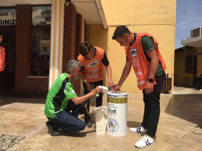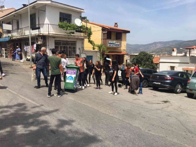 Milas Bilim Anadolu Lisesi öğrencileri, TEMA Vakfı Muğla Milas İlçe Sorumlusu Mehmet Nergiz ile birlikte Cumhuriyet Caddesi boyunca yer alan iş yerlerinden atıl pil ve ilaçları topladı.