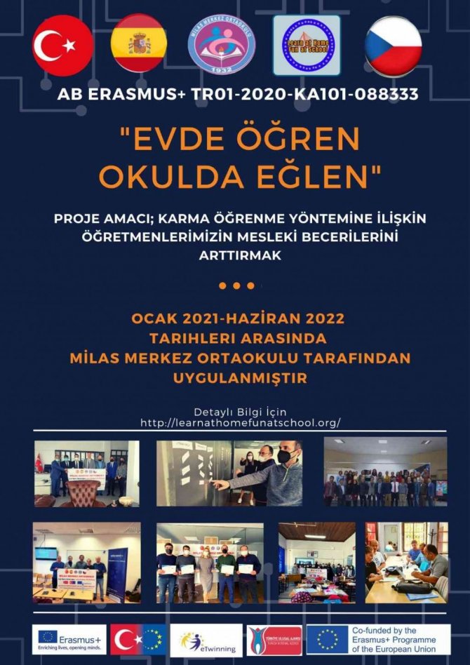 Milas Merkez Ortaokulu Ulusal Ajans'a 2020 yılında okul eğitimi alanında yaptığı başvuru sonucunda 15 bin 420 Euro fon almaya hak kazandı. Merkez Ortaokulu Müdürü Halil Akyer, "Evde Öğren Okulda Eğlen" isimli proje ile öğretmenlerin harmanlanmış öğrenme alanındaki mesleki becerilerini arttırmayı amaçladıklarını belirtti.