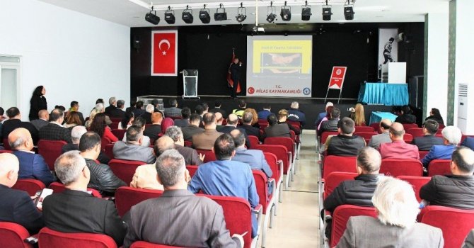 Milas Halk Eğitim Merkezi Toplantı Salonunda gerçekleştirilen güvenli okul toplantısına Milas Kaymakamı Eren Arslan, Milas İlçe Jandarma Komutanı Yarbay Hayrettin Fidan, Milas İlçe Emniyet Müdürü Erman Akkaya, Milas İlçe Milli Eğitim Müdürü İsa Bal, Milas İlçe Milli Eğitim Şube Müdürü Akın Coşkun, Okul Kurum Müdürleri, Müdür Yardımcıları, Okul Aile Birliği Başkanları ve Kantin İşletmecileri katıldı.