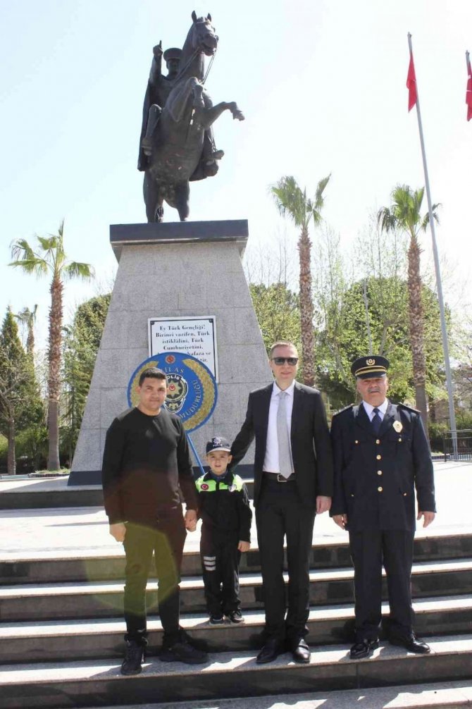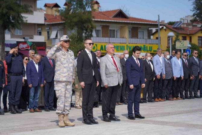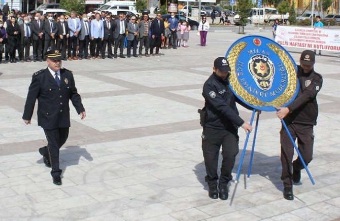 Milas İlçe Emniyet Müdürü Nedayi Atakan tarafından Atatürk Anıtı'na çelenk sunumuyla başlayan tören saygı duruşunda bulunulması ve istiklal marşımızın seslendirilmesiyle devam etti.