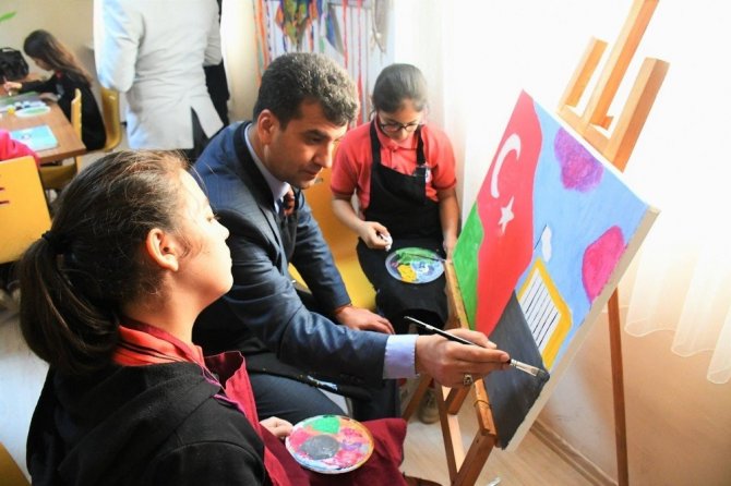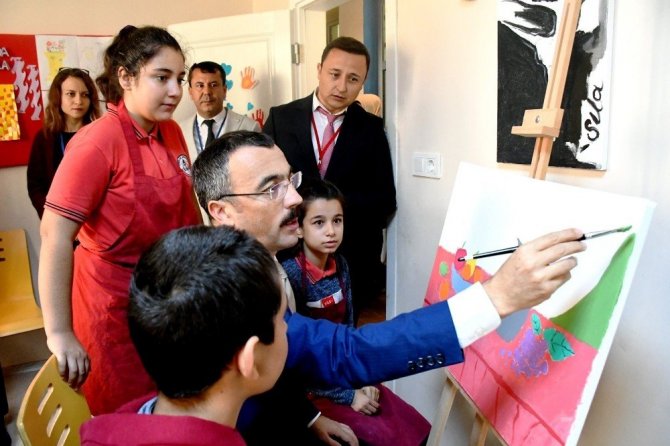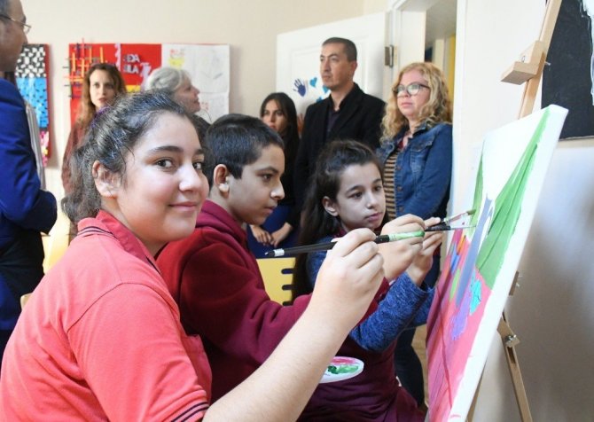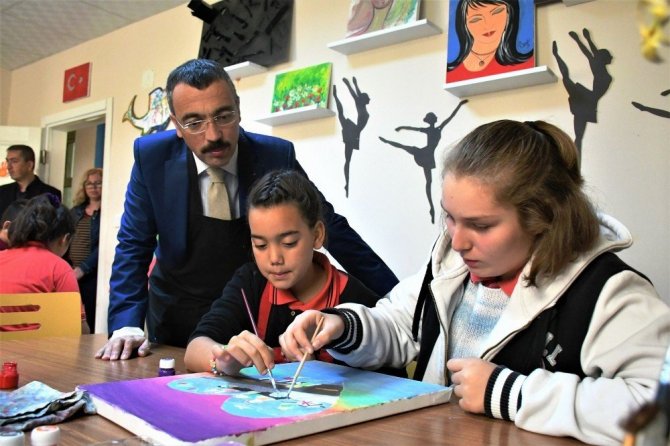 Milas Kaymakamı Eren Arslan, Milas İlçe Milli Eğitim Müdürü İsa Bal, öğrenciler, öğretmenlerin katıldığı etkinlikte Kaymakam Arslan ve İlçe Müdür Bal öğrenciler ile birlikte tuval çalışması yaptılar.