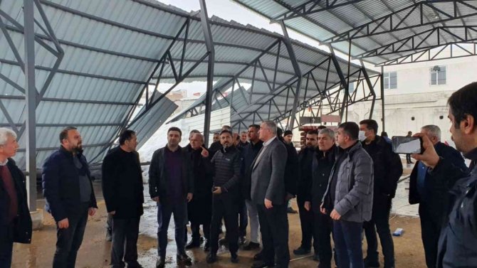 Adıyaman Küçük Sanayi Sitesi'nde olumsuz hava koşulları nedeniyle iş yerleri hasar gören esnaflara geçmiş olsun dileklerini ileten Milletvekili Aydın, Adıyaman Belediyesi'nin karla mücadele eden personele verdiği yemekte çalışanlarlar bir araya geldi.