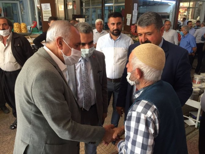 Esnaflarla bir araya gelen Milletvekili Yakup Taş'a, Besni Belediye Başkanı Eyyüp Mehmet Emre, Ak Parti Besni ilçe Başkanı İsmail Sümer ve partililer eşlik etti.