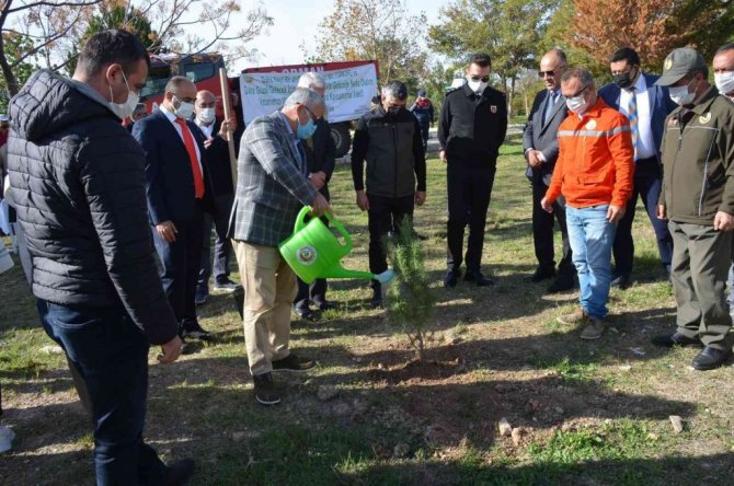 Konuşmanın ardından belirlenen alana fidan dikimi gerçekleştirildi.