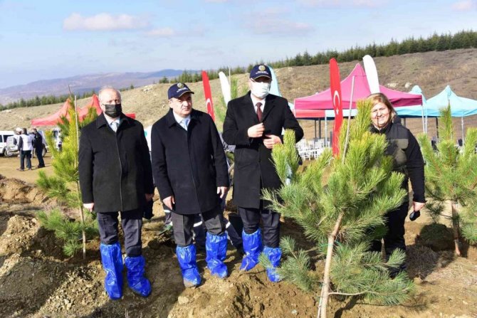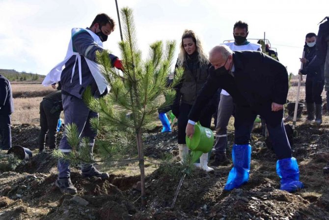 Protokol konuşmalarının ardından çam fidanları toprakla buluşturularak can suları verildi.