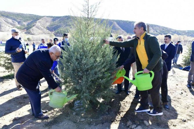 Gökçeyurt'ta bulunan 15 Temmuz Şehitleri Hatıra Ormanı'nda fidan dikimine Mamak Kaymakamı Ali Sırmalı, Mamak Belediye Başkanı Murat Köse, başkan yardımcıları, meclis üyeleri, öğretmenler ve öğrenciler katıldı. Başkan Köse, yeşilin her tonuyla toprağa hayat, canlılara nefes olacak bu anlamlı çevre seferberliği kapsamında öğrencilerle birlikte diktikleri fidanlara can suyu verdi. Mamak'ın semasına, havasına ve doğasına bu etkinlikle nefes olduklarını ifade eden Belediye Başkanı Köse, "Çocuklarımızla birlikte bugün fidanlarımızı toprakla buluşturduk. Çocuklarımıza çok değerli bir miras bırakıyoruz. İlçemizi yeşilin her tonuyla buluşturmaya devam edeceğiz" dedi.
