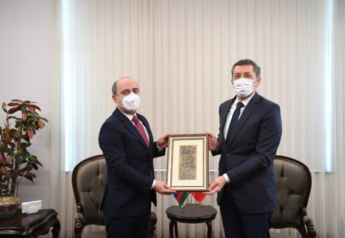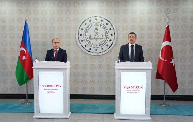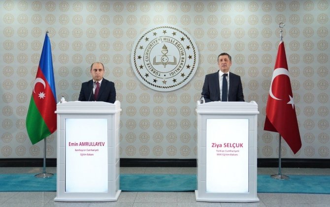 Milli Eğitim Bakanı Ziya Selçuk, Azerbaycan Cumhuriyeti Eğitim Bakanı Emin Amrullayev ve beraberindeki heyeti kabul etti. Milli Eğitim Bakanlığı merkez binasında gerçekleşen buluşmada iki ülke arasındaki eğitim ilişkileri ele alındı. Azerbaycan ve Türkiye arasında eğitim alanında atılacak adımlar üzerine ikili görüşme düzenlendi. Görüşme sonrasında iki bakanın katıldığı ortak basın açıklamasında konuşan Milli Eğitim Bakanı Ziya Selçuk, "Türkiye-Azerbaycan 9. Karma Ekonomik Komisyon Toplantısı kapsamında Başbakan Ali Asadov başkanlığındaki Azerbaycan Heyeti ülkemizi ziyaret etmişlerdir. Değerli Azerbaycan Heyetinin ülkemizi ziyaretleri bizleri onurlandırmıştır. Heyette yer alan mevkidaşım Emin Amrullayev ile 19 Şubat Cuma günü Cumhurbaşkanı Yardımcımız Fuat Oktay ve Azerbaycan Başbakanı Ali Asadov'un refakatinde, Türkiye-Azerbaycan Mesleki Eğitim Kurumu için bir protokol imzaladık. Bu protokol doğrultusunda açılacak ve bilişim teknolojileri, konaklama ve seyahat hizmetleri, mobilya ve iç mekân tasarımı, moda tasarımı teknolojileri gibi 5 alanda eğitim vermesini planladığımız Türkiye-Azerbaycan Mesleki Eğitim Kurumu ile mesleki eğitim alanında ülkemizin tecrübelerini kardeşlerimizle paylaşacağız. Atılan imzaların her iki ülkenin güzel evlatlarına hayırlı olmasını temenni ediyorum" ifadelerini kullandı.