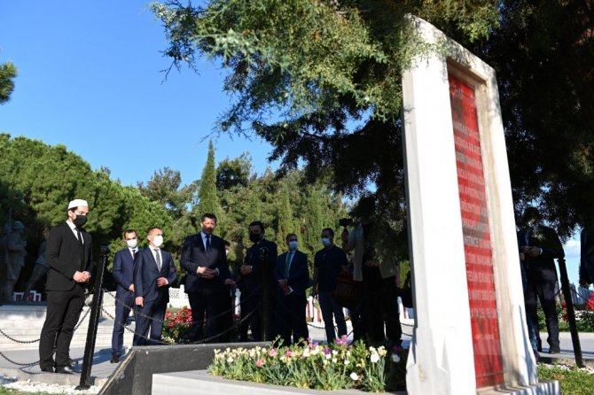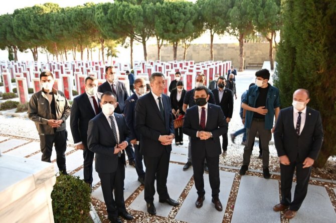 Çanakkale'ye temel atma, açılış töreni ve bir dizi programlar için gelen Milli Eğitim Bakanı Ziya Selçuk Çanakkale Şehitler Abidesi'ni ziyaret etti.