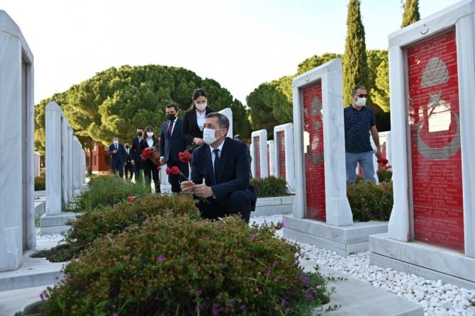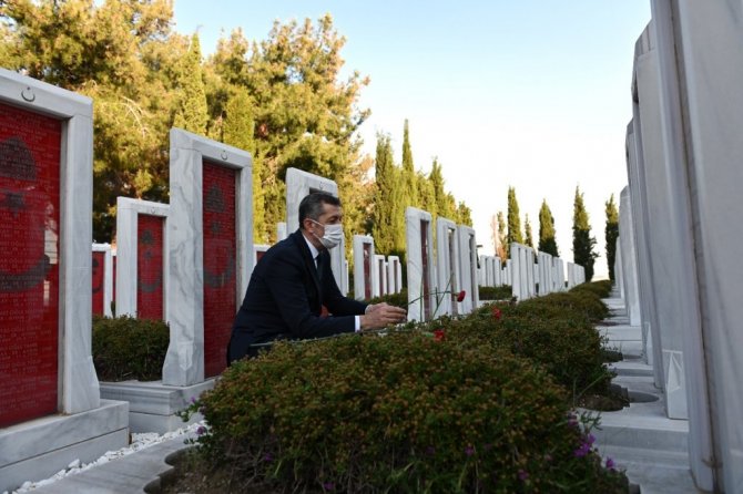 Çanakkale'ye temel atma, açılış töreni ve bir dizi programlar için gelen Milli Eğitim Bakanı Ziya Selçuk Çanakkale Şehitler Abidesi'ni ziyaret etti. Temsili şehit mezarlıklarına karanfil bırakan Bakan Selçuk, daha sonra Meçhul Asker kabri önünde tüm şehitler için dua etti.