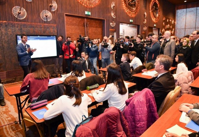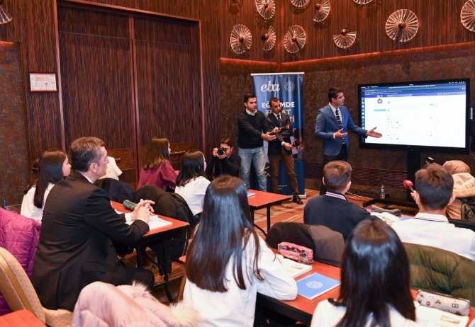 Milli Eğitim Bakanı Ziya Selçuk, EBA’nın yenilenmesi hakkında yaptığı sunumun ardından öğrencilerle fotoğraf çekildi. Sonrasında, oluşturulan EBA tanıdım sınıfını ziyaret eden Selçuk, ağırlıklı olarak 8’inci sınıf öğrencilerinden oluşan grupla ders dinledi.