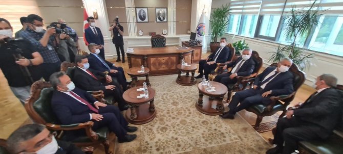 Karabük ziyareti kapsamında ilk olarak Karabük Valiliği'ni ziyaret eden Milli Eğitim Bakanı Ziya Selçuk, Vali Fuat Gürel, Milletvekilleri Cumhur Ünal, Niyazi...