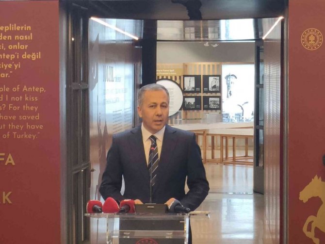 Açılış töreni öncesindeki konuşmasına, "Kıtaları, denizleri, gönülleri buluşturan, baş tacımız olan İstanbul'umuzda bugün çok önemli bir ev sahipliği yapıyoruz. Aziz şehrimizin milli mücadelede yüzüncü yılı sergisini az sonra hep birlikte açacağız" diyerek başlayan Ali Yerlikaya, daha sonra serginin girişinde bulunan, Mustafa Kemal Atatürk'e ait, "Ben Anteplilerin gözlerinden nasıl öpmem ki? Onlar yalnız Antep'i değil, tüm Türkiye'yi kurtardılar" yazısını okudu. Yerlikaya, "Başta Mustafa Kemal Atatürk olmak üzere, bir asırdan beri bu şehrimize gazilik onurunu yaşatan, bu şükrü bize her zaman hissettiren 6 bin 317 şehidimiz ve tüm gazilerimizi rahmet, minnet ve şükranla yad ediyorum" dedi.