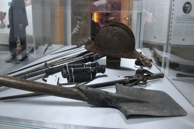 Sergide Serv Antlaşması’nın 1920 yılında Konya’da basılan bir kitapçığı, 24 Temmuz 1923 tarihinde imzalanan Yakındoğu Sorunlarına İlişkin Lozan Konferansı Antlaşması Osmanlı Türkçesi metni, 1927 yılında Tayyare Cemiyeti’nce basılmış Nutuk’un ilk baskısı, Gazi Mustafa Kemal ıslak imzalı ve 14 Mayıs 1343 tarihli istiklal madalyası ve beraberinde verilen takdirname de yer alıyor. Ayrıca ilk kez Alaşehir Kongresi Reisi Hacı Muhittin Bey’e (Çarıklı) verilmiş el yapımı hatıra bayrak, Hacı Muhittin’in kendi el yazısıyla kaleme aldığı evrak ile kartviziti de sergileniyor. Yunan ordusunca Türk siperlerine fırlatılmış top mermilerinin boş kovanlarından devşirilmiş cephe hatırası vazolar, istiklal madalyaları, hat levhalar, harp madalyası ve beratı, liyakat madalyası, mecidi nişanı ve Alman demir salip nişanı, milli müdafaa yüzükleri ve Kuva-i Milliye müfrezelerince kullanılmış silah, teçhizat ve mühimmattan oluşan yaklaşık 100 parça obje görülebiliyor. Alaşehir’deki sosyal ve iktisadi yaşama ayna tutan mermer üzerine Osmanlıca yazılmış gayrimüslim bir üzüm ihracatçısına ait tabela, üzüm desenli seramik ve cam eserler, Sarıkız maden suyunun Fransız baskısı etiketi ve benzeri eserler de sergileniyor.