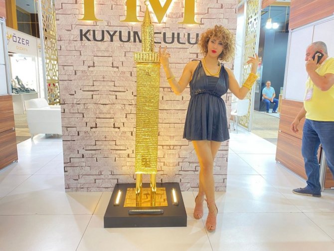 Diyarbakır'da bir otelde özel davetlilerin katılımıyla gerçekleşen takı sergisi gözleri kamaştırdı. Sergiye özel tarihi Dört Ayaklı Minare bakırdan işlenerek 2 kilogram altın ile kaplandı. Piyasa değeri 1 milyon 100 bin TL olan minare minyatürü görenleri şaşırttı. Tasarımlar arasında bir diğer ilgi gören ise altın kıyafetler oldu. 7 kişilik ekibin 14 günde yaptığı 3 kilogram ağırlığındaki iki altın kıyafetin fiyatı dudak uçuklattı. 22 ayardan yapılan kıyafetlerin değerinin 1 milyon 300 bin TL ve 7 bin 900 dolar olduğu öğrenildi.