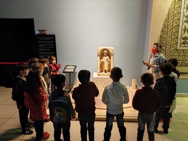Sonrasında müzeyi gezen öğrenciler sordukları sorulara müze ve arkeoloji hakkında ayrıntılı bilgiler edindiler.