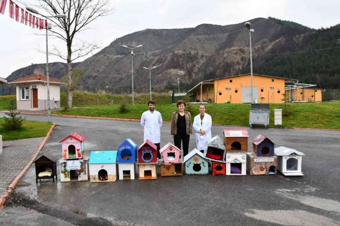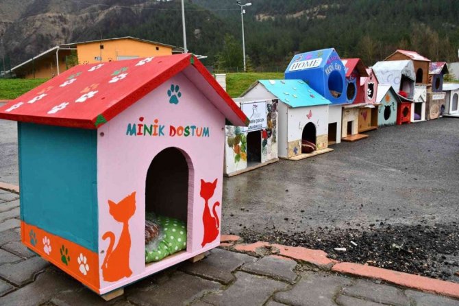 Karabük'te anaokulu öğrencileri "Onlarında Bir Yuvası Olsun" projesi kapsamında sokakta kalan kedilerin soğuk havalarda sıcak bir yuvaya kavuşması için yaptıkları kedi kulübelerini hayvan barınağı ve bakımevine teslim ettiler.