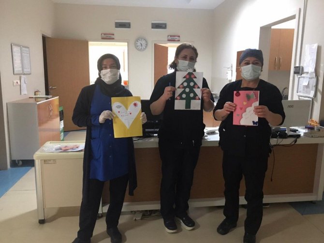 Minik ellerden sağlık çalışanlarına hediye