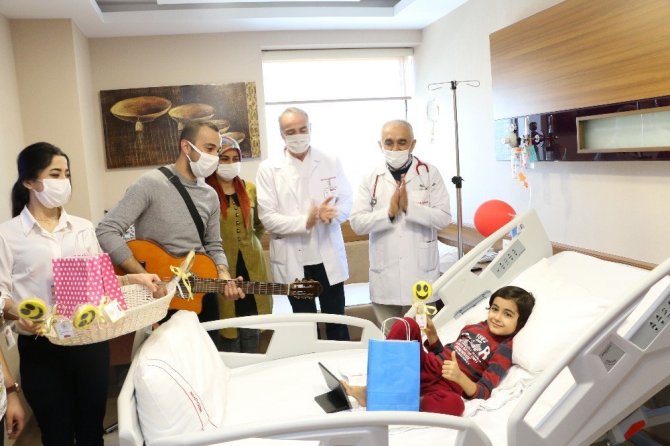 Medical Park Gaziantep Hastanesi Başhekimi Uzm. Dr. Sadreddin Haksal ve Çocuk Hematolojisi Uzmanı Doç. Dr. Mesut Garipardıç tarafından hastanenin Pediatri Servisi'nde tedavi gören minik hematoloji misafirlerinin sağlıkla gülümsemesi temennisiyle sarı kurdelelerle süslenen gülümseyen emojili kurabiye ve kar küresi hediye edildi. Gitar eşliğinde şarkılar söyleyen çocuklar eğlenceli anlar yaşadılar. Başhekim Uzm. Dr. Haksal tedavi gören miniklerle ve aileleriyle sohbet ederek, "Çocuklarımızı mutlu etmek onların yüzündeki gülümsemenin sebebi olmak bizleri de mutlu ediyor. Minik yavrularımıza acil şifalar diliyorum" dedi. Çocukların tedavi süreçlerini değerlendiren Çocuk Hematolojisi Uzmanı Doç. Dr. Garipardıç, "15 Şubat, Uluslararası Çocukluk Kanseri Günü'ne dikkat çekmek istedik. Burada tedavi gören minik misafirlerimiz bizim için çok önemli ve çok değerli. Onlara moral vermek, onların her zaman yanlarında olmak bizim en önemli görevimizdir. Her çocuğumuz bizim evladımız gibi. Onların sağlıklarına kavuşmaları için çabalıyoruz. Onların sağlıkla gülümsemeleri ise bizim için en güzel hediye" diye konuştu.
