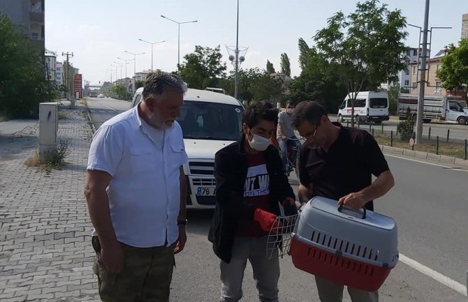 Iğdır merkez yol kenarında duyarlı bir vatandaş tarafından bulunan minik kaplumbağa bakıma alındı.