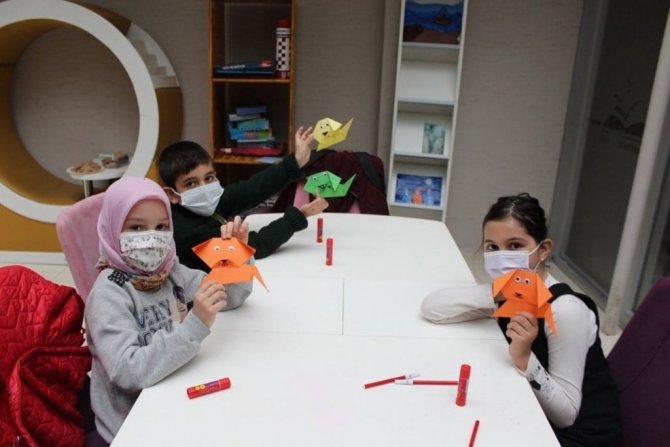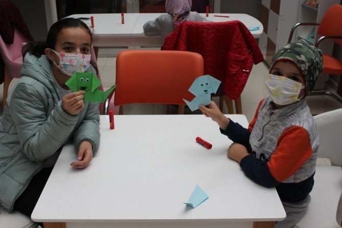 Minik kitapseverler kütüphanede origami sanatını öğrendi