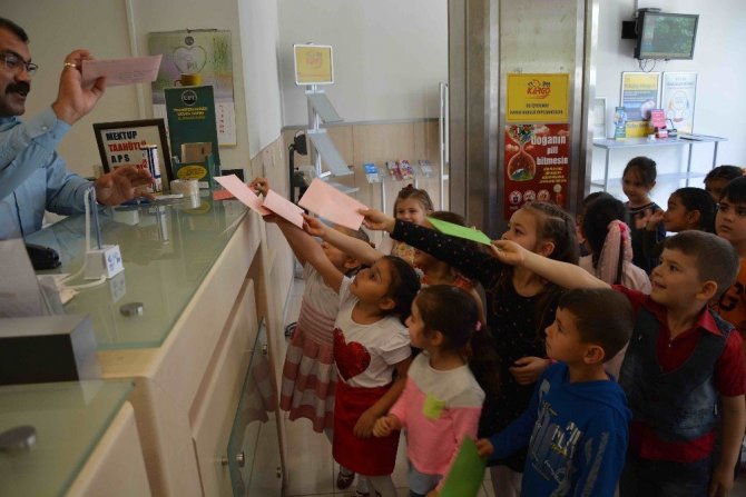 Okul Müdürü İbrahim Kaplan ve öğretmenlerinin gözetiminde Ortaca PTT Müdürlüğü’ne gelen öğrenciler, hazırladıkları mektupları ve içerisinde çeşitli hediyeler olan koliyi yetkililere teslim etti.