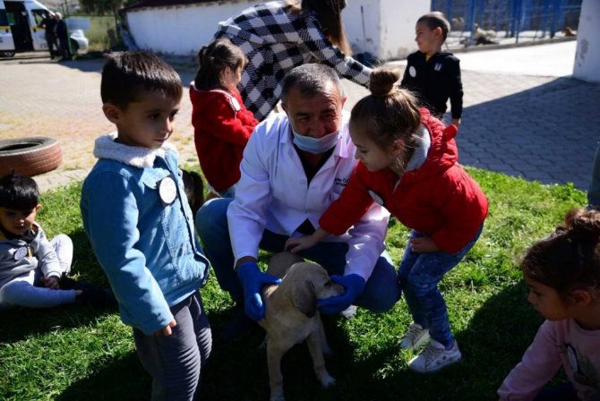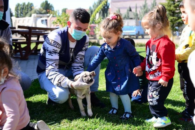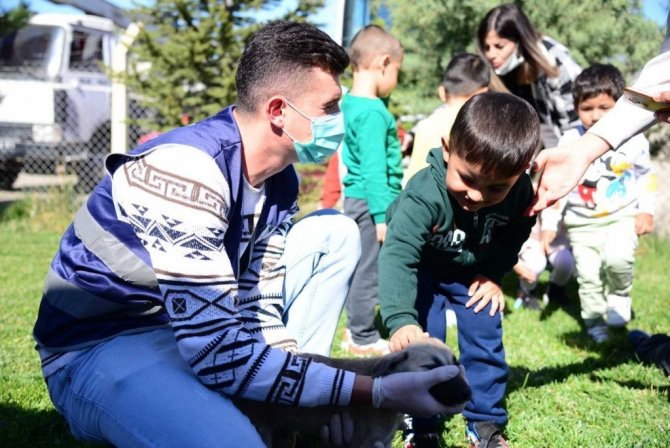 Minik öğrenciler merkezde can dostlarla bir arada olmaktan dolayı oldukça mutlu olduklarını belirterek, "Can dostlarımızı çok seviyoruz. Onlara burada çok iyi bakan belediyemize teşekkür ediyoruz" diye konuştu.
