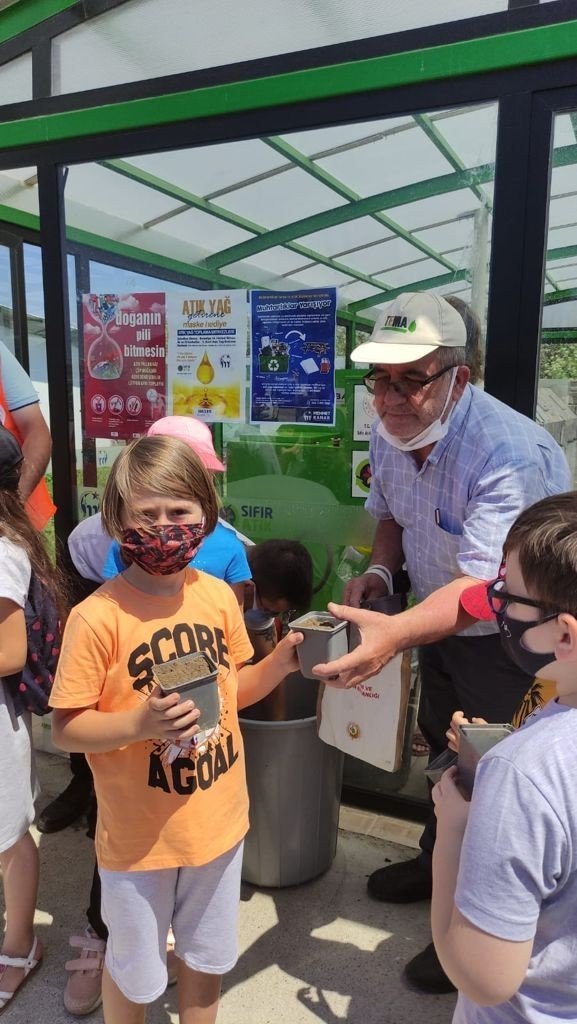 "Sıfır Atık" seferberliğine katılarak çevre bilincine sahip olan öğrenciler, yanlarında getirdikleri meyve sebze atıklarını kompost makinesine atarak kompost üretmeye başladı. Sıfır atıkla ilgili yapılan çalışmaları yerinde görme fırsatı bulan öğrenci ve velilere, bitkisel atık yağ toplama kabı dağıtılarak biriktirmeleri ve geri dönüşüme kazandırmaları istendi.